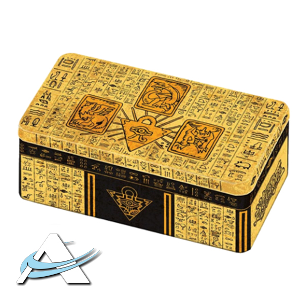 Sfrutta il potere delle Divinità del Faraone con una nuovissima tin raffigurante la parte superiore della Tavoletta dei Ricordi Perduti, dove sono immortalati Slifer il Drago del Cielo, Obelisk il Tormentatore e il Drago Alato di Ra!
