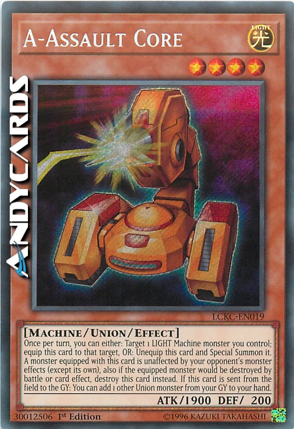 Una volta per turno, puoi: scegliere come bersaglio 1 mostro LUCE di Tipo Macchina che controlli; equipaggia questa carta a quel bersaglio, OPPURE: disequipaggiare questa carta ed Evocarla Specialmente. Un mostro equipaggiato con questa carta è immune agli effetti dei mostri del tuo avversario (eccetto i suoi stessi), inoltre, se il mostro equipaggiato sta per essere distrutto in battaglia o dall'effetto di una carta, distruggi invece questa carta. Se questa carta viene mandata dal Terreno al Cimitero: puoi aggiungere 1 altro mostro Unione dal tuo Cimitero alla tua mano.