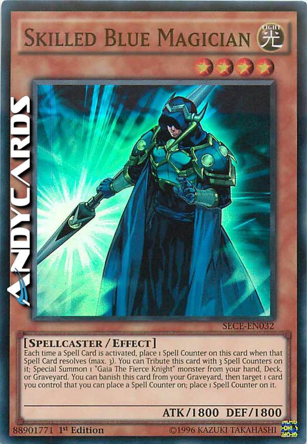 Ogni volta che viene attivata una Carta Magia, metti 1 Segnalino Magia su questa carta quando quella Carta Magia si risolve (massimo 3). Puoi offrire come Tributo questa carta con 3 Segnalini Magia su di essa; Evoca Specialmente 1 mostro "Gaia il Cavaliere" (compreso "Cavaliere Vento Oscuro di Gaia", eccetto "Gaia il Cavaliere, la Forza della Terra") dalla tua mano, Deck o Cimitero. Puoi bandire questa carta dal tuo Cimitero, poi scegliere come bersaglio 1 carta che controlli su cui puoi mettere un Segnalino Magia; metti 1 Segnalino Magia su di essa.
