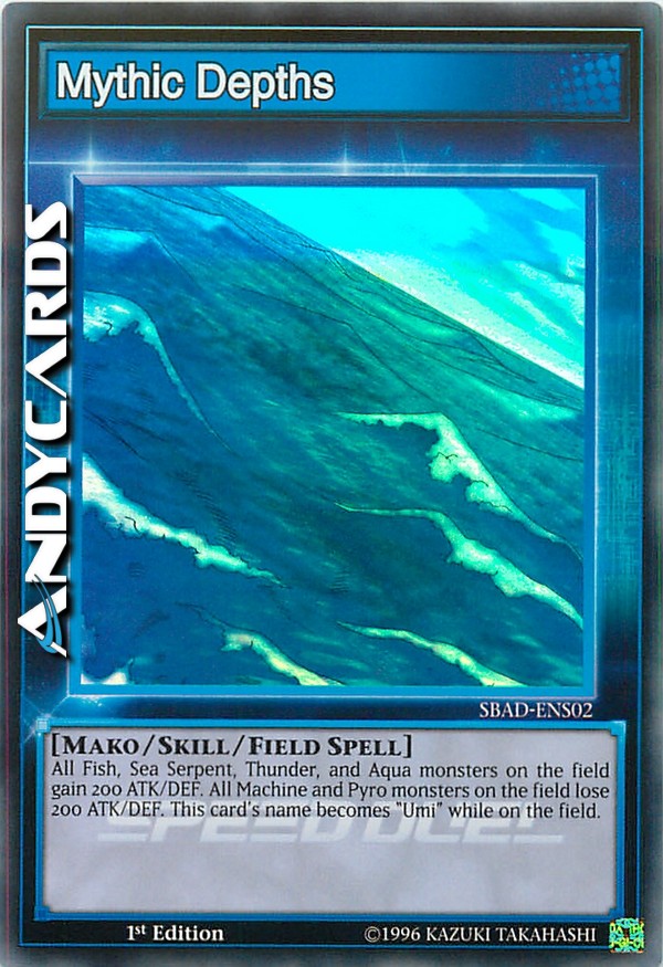 All Fish, Sea Serpent, Thunder, and Aqua monsters on the field gain 200 ATK/DEF. All Machine and Pyro monsters on the field lose 200 ATK/DEF. This card's name becomes "Umi" while on the field.