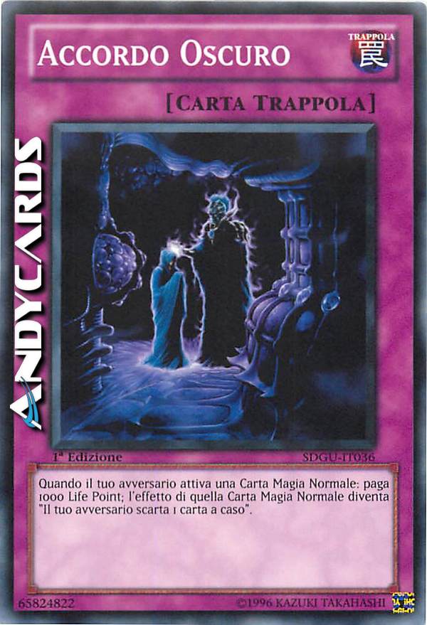Quando il tuo avversario attiva una Carta Magia Normale: paga 1000 Life Point; l'effetto di quella Carta Magia Normale diventa "Il tuo avversario scarta 1 carta a caso".