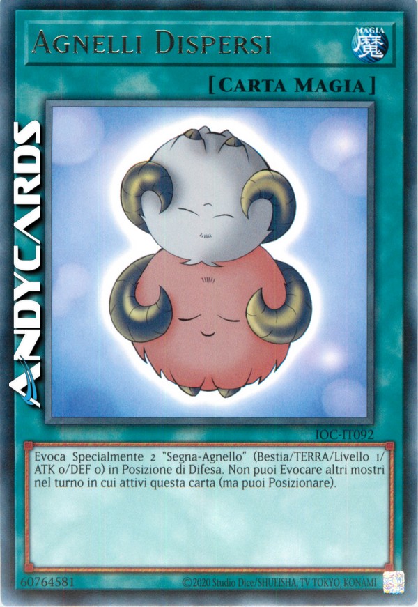 Se attivi questa carta, non puoi Evocare tramite Evocazione Normale, Evocazione per Scoperta o Evocazione Speciale durante questo turno. Evoca tramite Evocazione Speciale 2 "Segna-Agnello" (Tipo Bestia/TERRA/Livello 1/ATK 0/DEF 0) in posizione di Difesa.