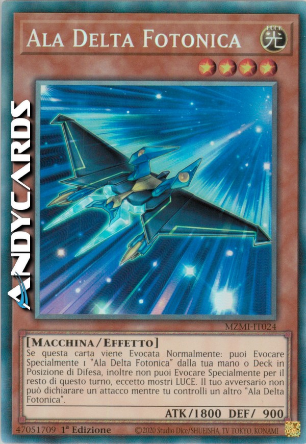 Se questa carta viene Evocata Normalmente: puoi Evocare Specialmente 1 "Ala Delta Fotonica" dalla tua mano o Deck in Posizione di Difesa, inoltre non puoi Evocare Specialmente per il resto di questo turno, eccetto mostri LUCE. Il tuo avversario non può dichiarare un attacco mentre tu controlli un altro "Ala Delta Fotonica".