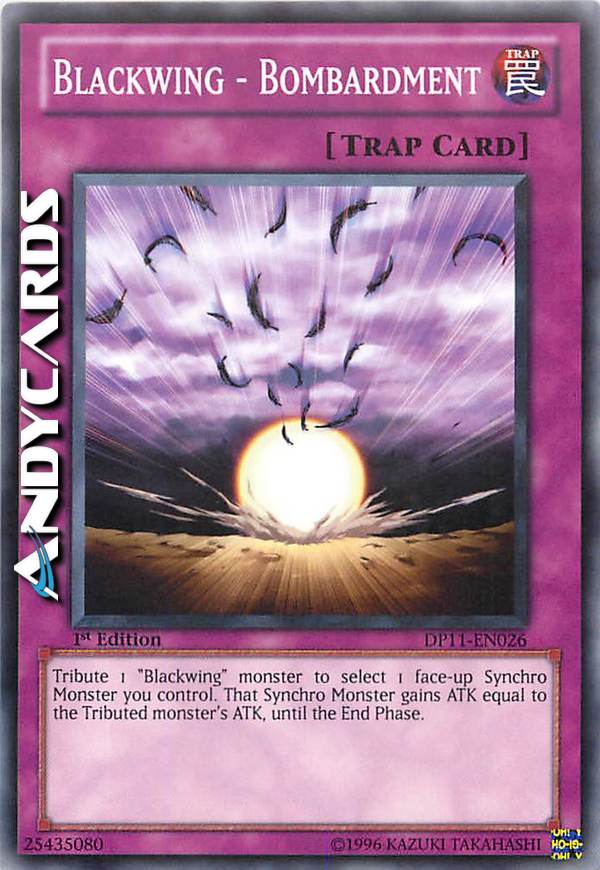 Tribute 1 "Blackwing" monster to select 1 face-up Synchro Monster you control. That Synchro Monster gains ATK equal to the Tributed monster's ATK, until the End Phase.
