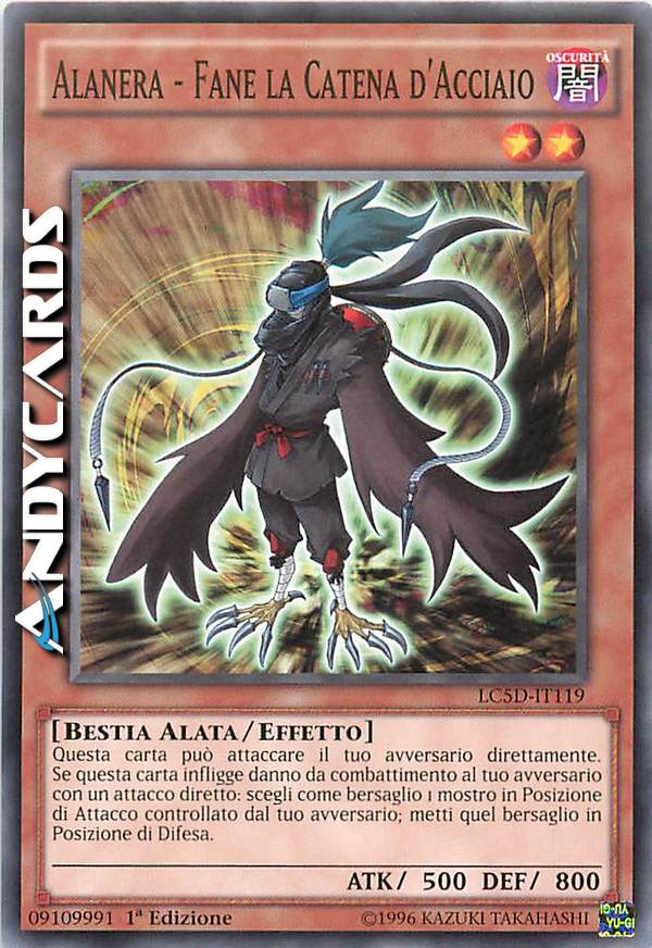 Questa carta può attaccare il tuo avversario direttamente. Quando questa carta attacca il tuo avversario direttamente ed infligge danno da combattimento al tuo avversario metti in Posizione di Difesa 1 mostro in Posizione di Attacco controllato dal tuo avversario.