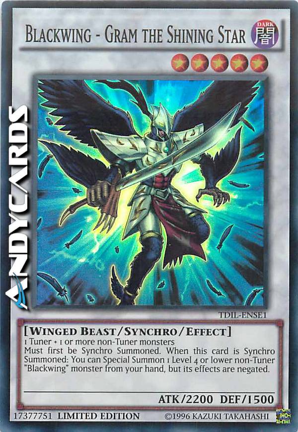 Must first be Synchro Summoned. When this card is Synchro Summoned: You can Special Summon 1 Level 4 or lower non-Tuner "Blackwing" monster from your hand, but its effects are negated.