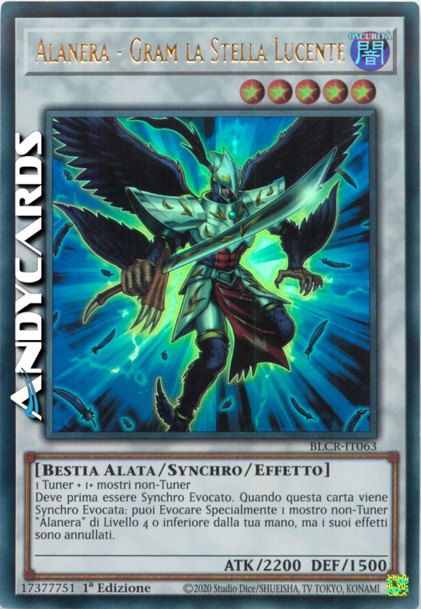 Deve prima essere Synchro Evocato. Quando questa carta viene Synchro Evocata: puoi Evocare Specialmente 1 mostro non-Tuner "Alanera" di Livello 4 o inferiore dalla tua mano, ma i suoi effetti sono annullati.