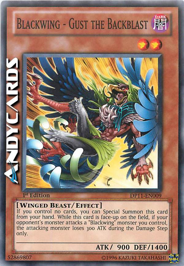 If you control no cards, you can Special Summon this card from your hand. While this card is face-up on the field, if your opponent's monster attacks a "Blackwing" monster you control, the attacking monster loses 300 ATK during the Damage Step only.