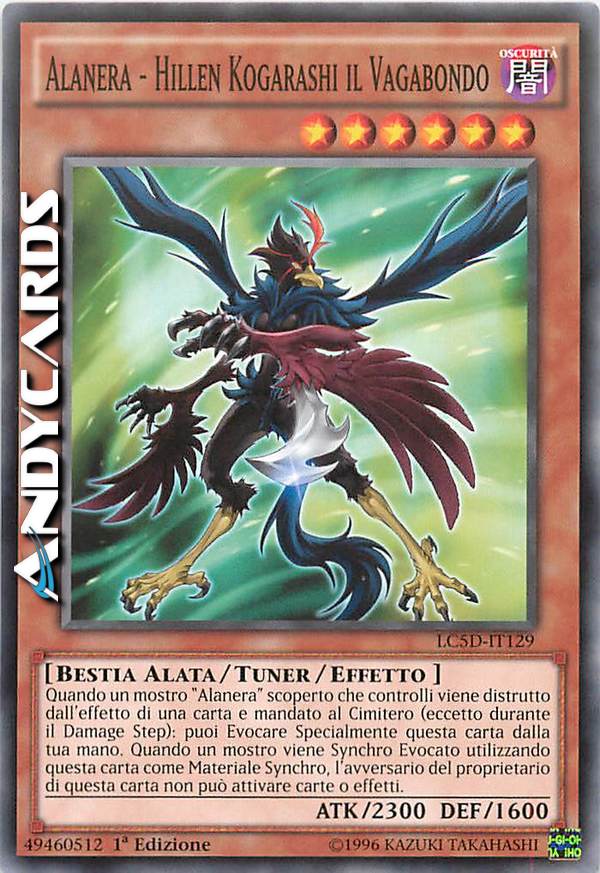 Quando un mostro "Alanera" scoperto che controlli viene distrutto dall'effetto di una carta e mandato al Cimitero, puoi Evocare Specialmente questa carta dalla tua mano. Quando Synchro Evochi utilizzando questa carta come uno dei Mostri Materiale Synchro, il tuo avversario non può attivare carte o effetti.