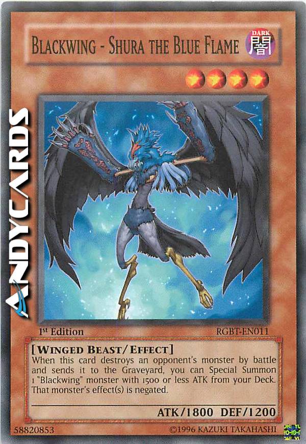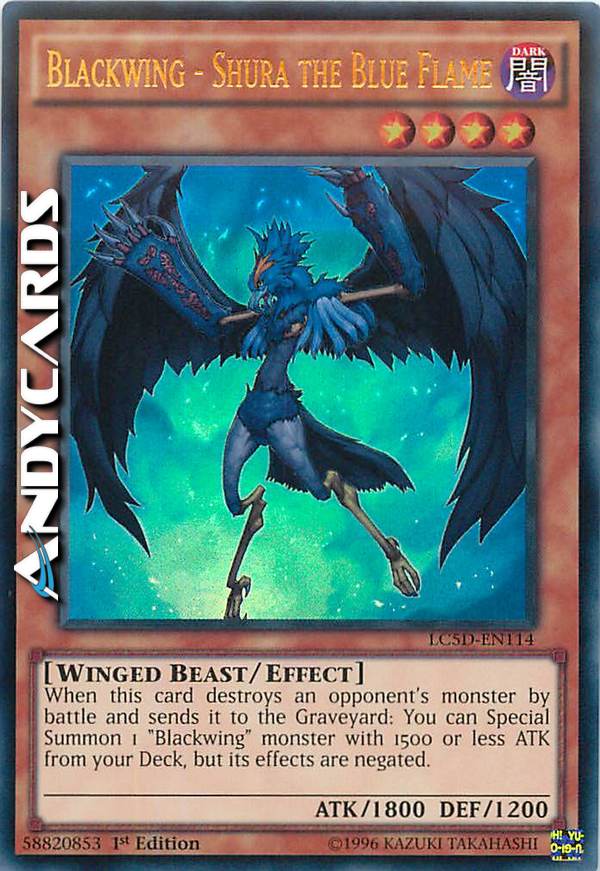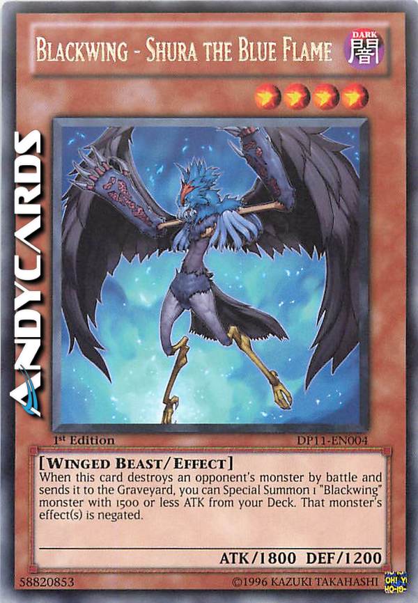 When this card destroys an opponent's monster by battle and sends it to the Graveyard, you can Special Summon 1 "Blackwing" monster with 1500 or less ATK from your Deck. That monster's effect (s) is negated.
