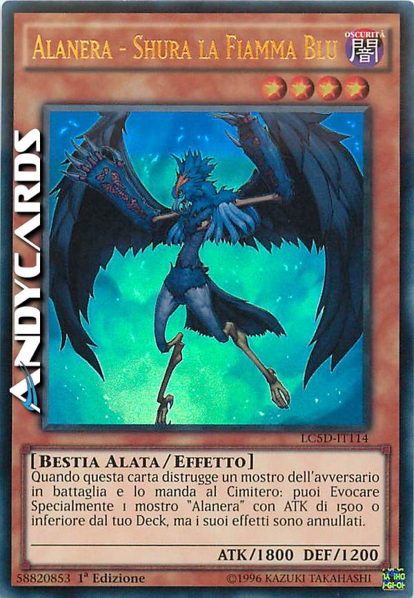 Quando questa carta distrugge un mostro dell'avversario in battaglia e lo manda al Cimitero, puoi Evocare Specialmente 1 mostro "Alanera" con ATK di 1500 o inferiore dal tuo Deck. Gli effetti di quel mostro sono annullati.
