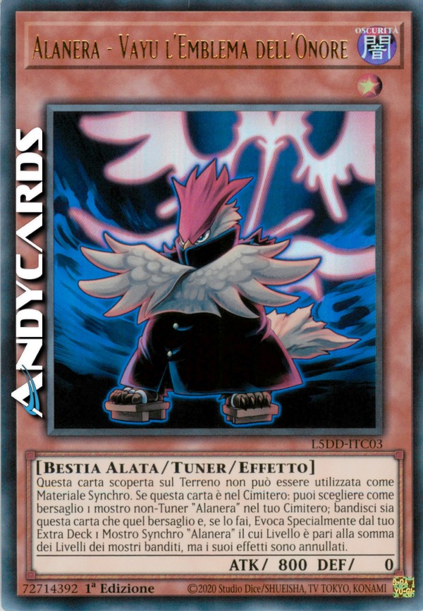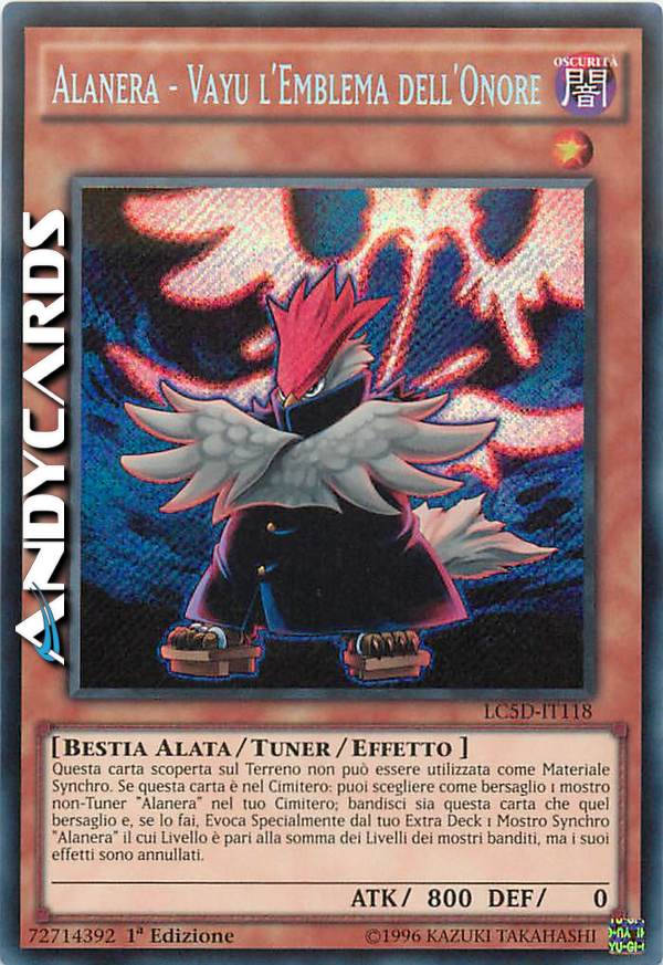 Se questa carta è scoperta sul Terreno, non puoi utilizzarla per una Synchro Evocazione. Se questa carta è nel tuo Cimitero, puoi rimuovere dal gioco questa carta più un mostro non-Tuner "Alanera" nel tuo Cimitero ed Evocare Specialmente 1 mostro Synchro "Alanera" dal tuo Extra Deck il cui Livello è pari alla somma dei Livelli dei mostri rimossi. Gli effetti di quel mostro Synchro sono annullati.