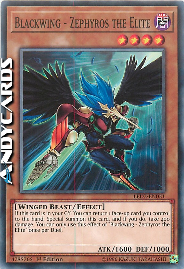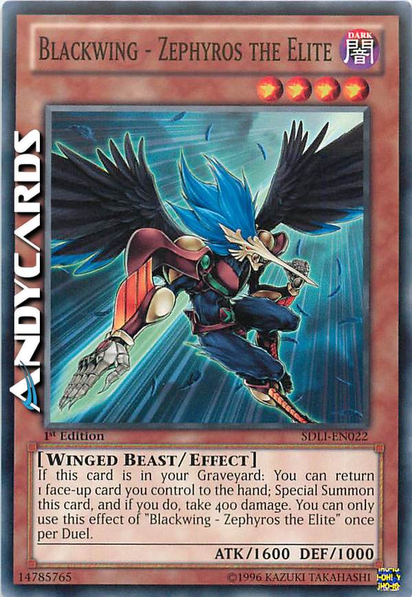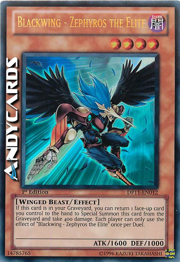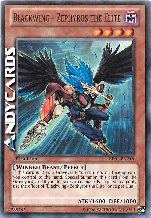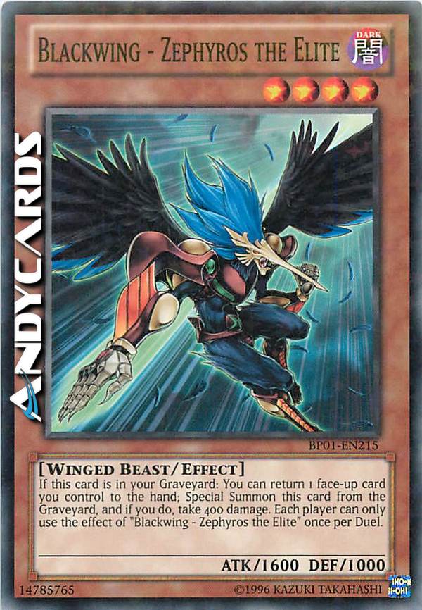 If this card is in your GY: You can return 1 face-up card you control to the hand; Special Summon this card, and if you do, take 400 damage. You can only use this effect of "Blackwing - Zephyros the Elite" once per Duel.