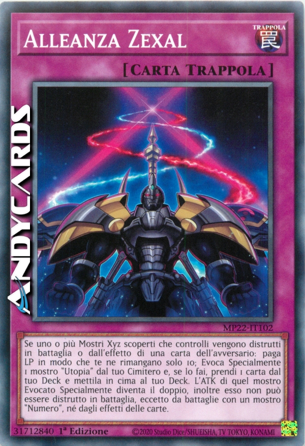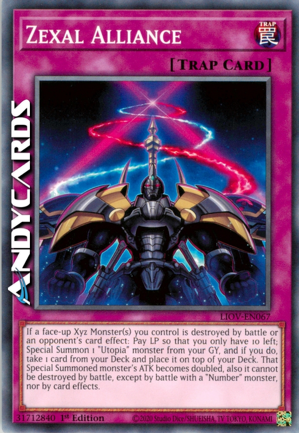 Se uno o più Mostri Xyz scoperti che controlli vengono distrutti in battaglia o dall'effetto di una carta dell'avversario: paga LP in modo che te ne rimangano solo 10; Evoca Specialmente 1 mostro "Utopia" dal tuo Cimitero e, se lo fai, prendi 1 carta dal tuo Deck e mettila in cima al tuo Deck. L'ATK di quel mostro Evocato Specialmente diventa il doppio, inoltre esso non può essere distrutto in battaglia, eccetto da battaglie con un mostro "Numero", né dagli effetti delle carte.