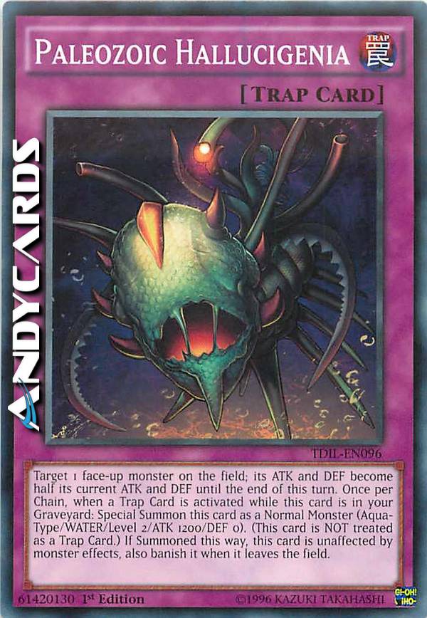 Scegli come bersaglio 1 mostro scoperto sul Terreno; i suoi ATK e DEF diventano la metà dei suoi ATK e DEF attuali fino alla fine di questo turno. Una volta per Catena, quando viene attivata una Carta Trappola mentre questa carta è nel tuo Cimitero: Evoca Specialmente questa carta come Mostro Normale (Tipo Acqua/ACQUA/Livello 2/ATK 1200/DEF 0). (Questa carta NON viene considerata come una Carta Trappola.) Se viene Evocata in questo modo, questa carta è immune agli effetti dei mostri, inoltre bandiscila quando lascia il Terreno.