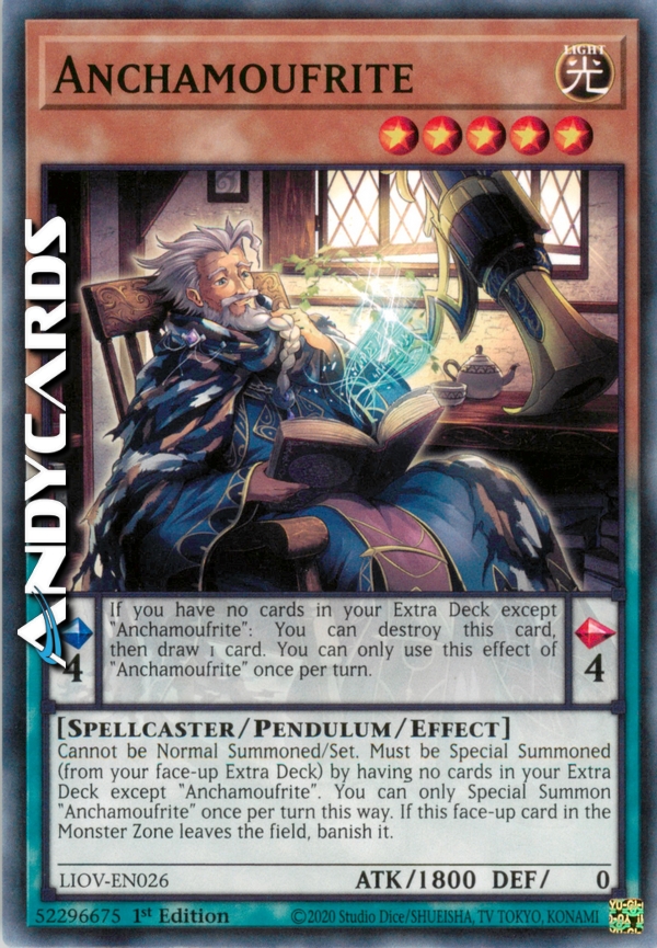 Pendulum Effect: If you have no cards in your Extra Deck except "Anchamoufrite": You can destroy this card, then draw 1 card. You can only use this effect of "Anchamoufrite" once per turn.
