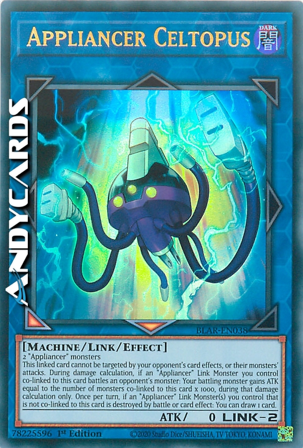 This linked card cannot be targeted by your opponent's card effects, or their monsters' attacks. During damage calculation, if an "Appliancer" Link Monster you control co-linked to this card battles an opponent's monster: Your battling monster gains ATK equal to the number of monsters co-linked to this card x 1000, during that damage calculation only. Once per turn, if an "Appliancer" Link Monster(s) you control that is not co-linked to this card is destroyed by battle or card effect: You can draw 1 card.