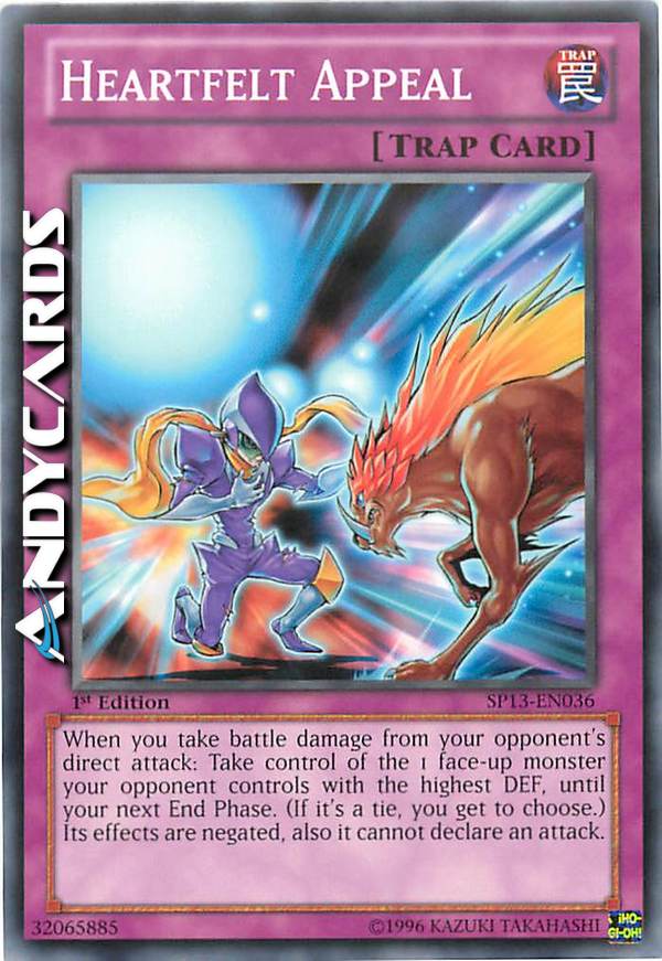 When you take battle damage from your opponent's direct attack: Take control of the 1 face-up monster your opponent controls with the highest DEF, until your next End Phase. (If it's a tie, you get to choose.) Its effects is negated, also it cannot declare an attack.