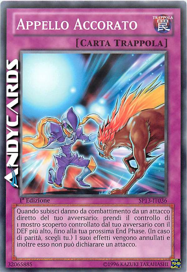 Quando subisci danno da combattimento da un attacco diretto del tuo avversario: prendi il controllo di 1 mostro scoperto controllato dal tuo avversario con il DEF più alto, fino alla tua prossima End Phase. (In caso di parità, scegli tu.) I suoi effetti vengono annullati e inoltre esso non può dichiarare un attacco.