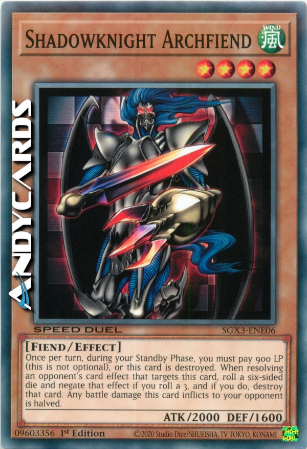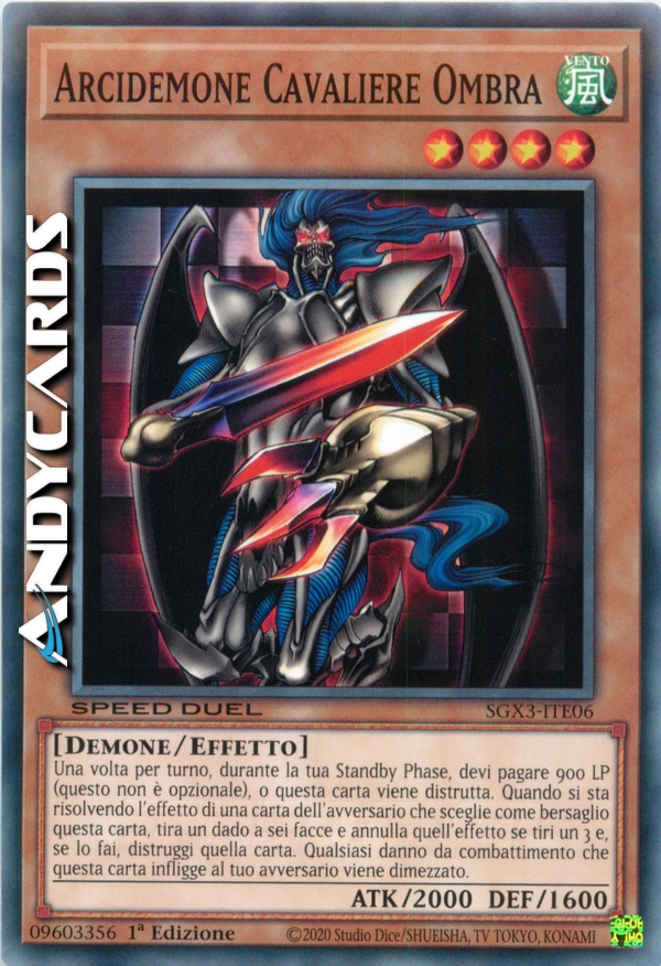 Una volta per turno, durante la tua Standby Phase, devi pagare 900 LP (questo non è opzionale), o questa carta viene distrutta. Quando si sta risolvendo l'effetto di una carta dell'avversario che sceglie come bersaglio questa carta, tira un dado a sei facce e annulla quell'effetto se tiri un 3 e, se lo fai, distruggi quella carta. Qualsiasi danno da combattimento che questa carta infligge al tuo avversario viene dimezzato.