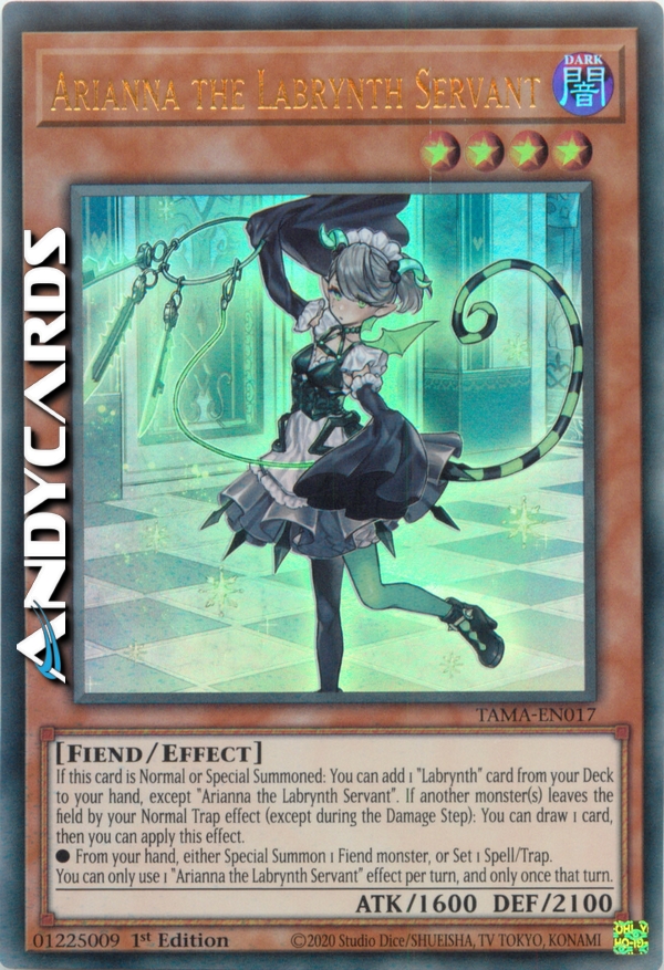 Se questa carta viene Evocata Normalmente o Specialmente: puoi aggiungere 1 carta "Labrinto" dal tuo Deck alla tua mano, eccetto "Arianna la Servitrice del Labrinto". Se uno o più altri mostri lasciano il Terreno per l'effetto di una tua Trappola Normale (eccetto durante il Damage Step): puoi pescare 1 carta, poi puoi applicare questo effetto.