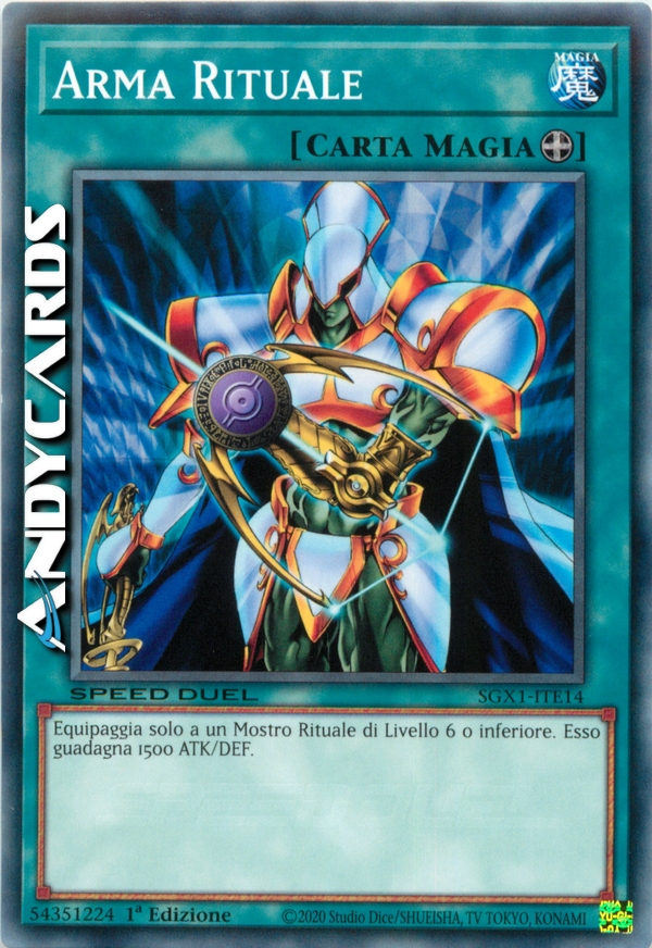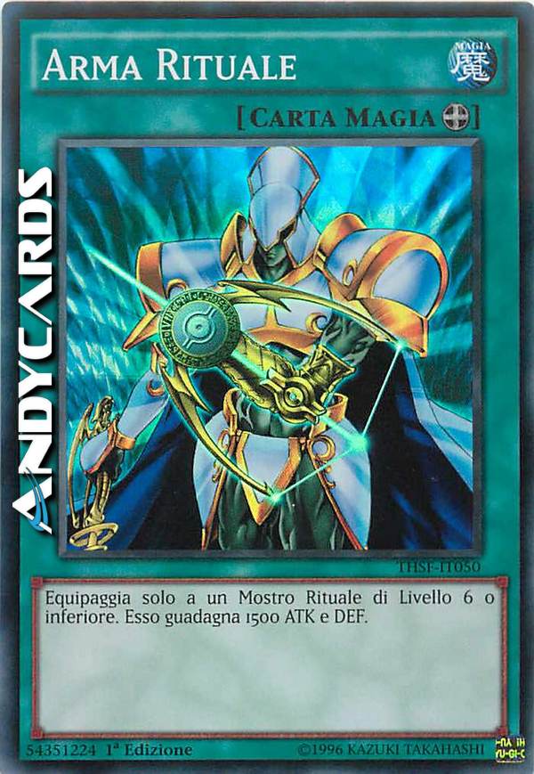 Equipaggia solo a un Mostro Rituale di Livello 6 o inferiore. Esso guadagna 1500 ATK e DEF.