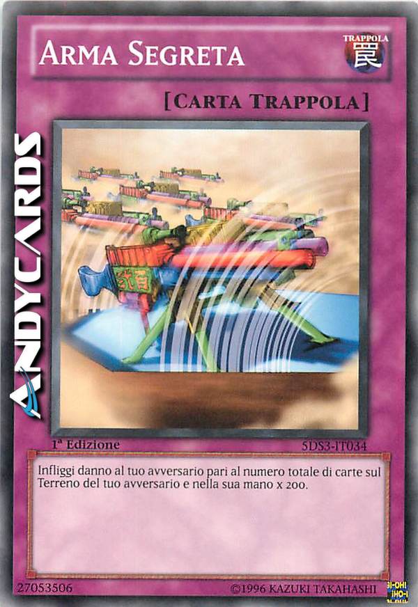 Infliggi danni ai Life Points del tuo avversario pari al numero totale di carte sul Terreno del tuo avversario e nella sua Mano x 200 punti.