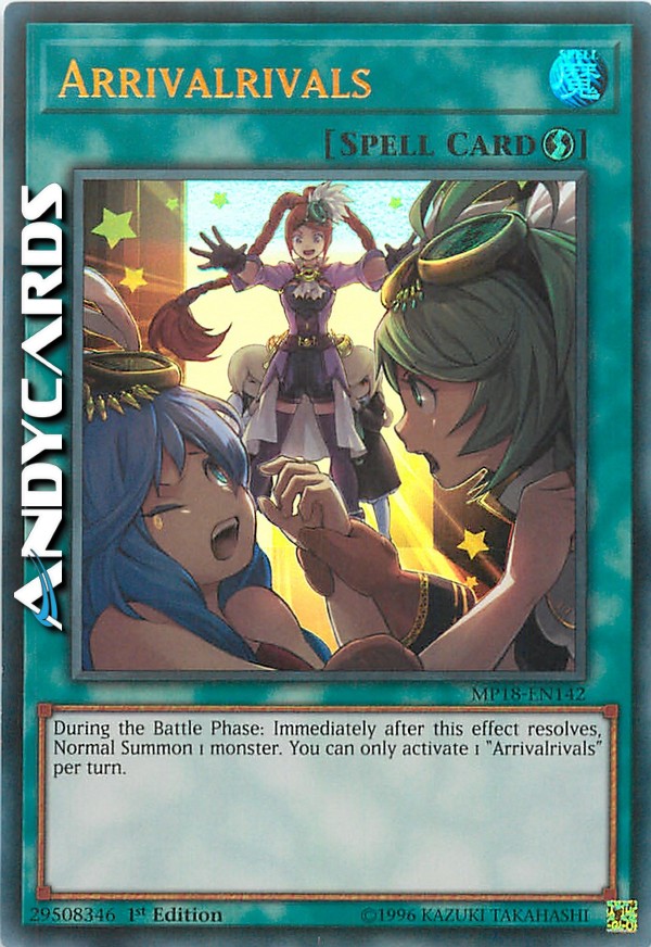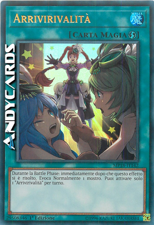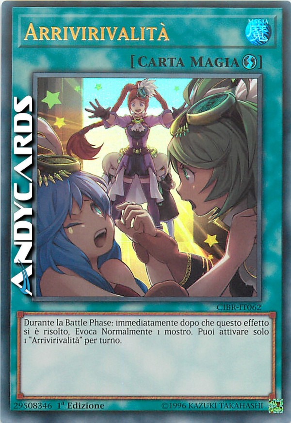 Durante la Battle Phase: immediatamente dopo che questo effetto si è risolto, Evoca Normalmente 1 mostro. Puoi attivare solo 1 "Arrivirivalità" per turno.