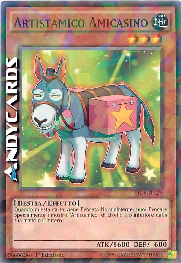 Quando questa carta viene Evocata Normalmente: puoi Evocare Specialmente 1 mostro "Artistamico" di Livello 4 o inferiore dalla tua mano o cimitero.