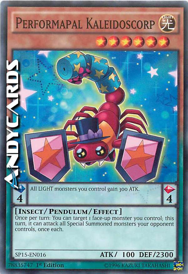 Once per turn: You can target 1 face-up monster you control; this turn, it can attack all Special Summoned monsters your opponent controls, once each. Pendulum Scale: 4 Pendulum Effect: All LIGHT monsters you control gain 300 ATK.