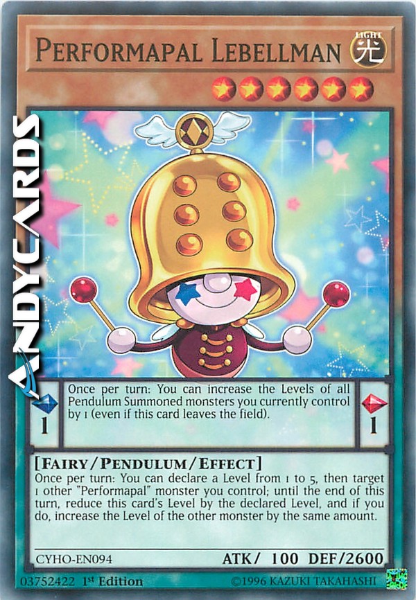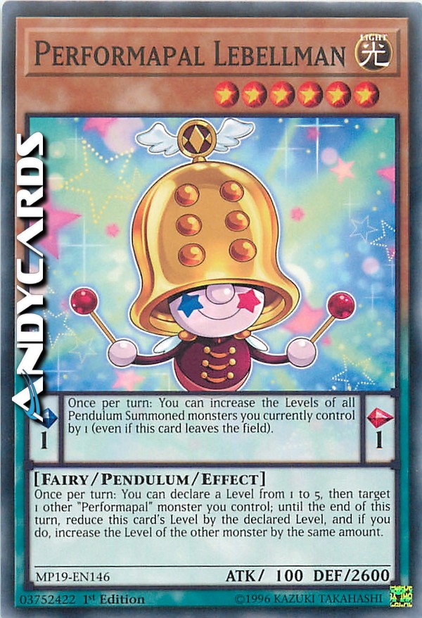 Once per turn: You can declare a Level from 1 to 5, then target 1 other "Performapal" monster you control; until the end of this turn, reduce this card's Level by the declared Level, and if you do, increase the Level of the other monster by the same amount.