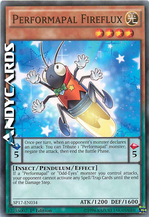 If a "Performapal" or "Odd-Eyes" monster you control attacks, your opponent cannot activate any Spell/Trap Cards until the end of the Damage Step. - Once per turn, when an opponent's monster declares an attack: You can Tribute 1 "Performapal" monster; negate the attack, then end the Battle Phase.
