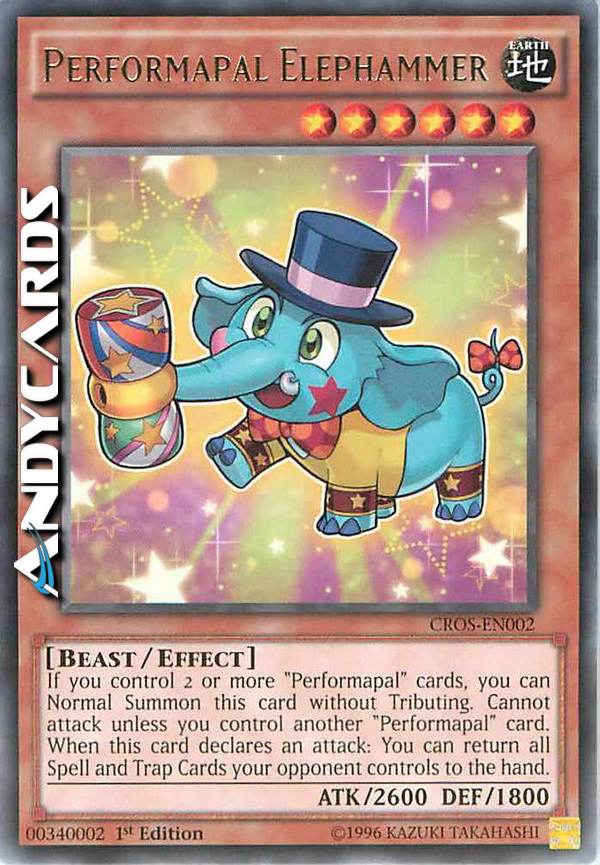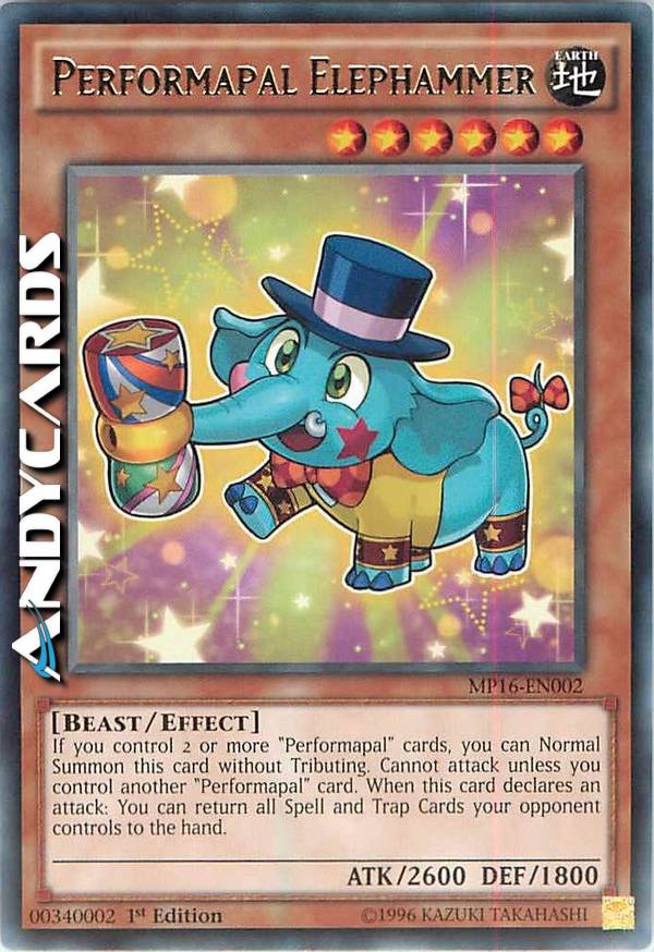 If you control 2 or more "Performapal" cards, you can Normal Summon this card without Tributing. Cannot attack unless you control another "Performapal" card. When this card declares an attack: You can return all Spell and Trap Cards your opponent controls to the hand.
