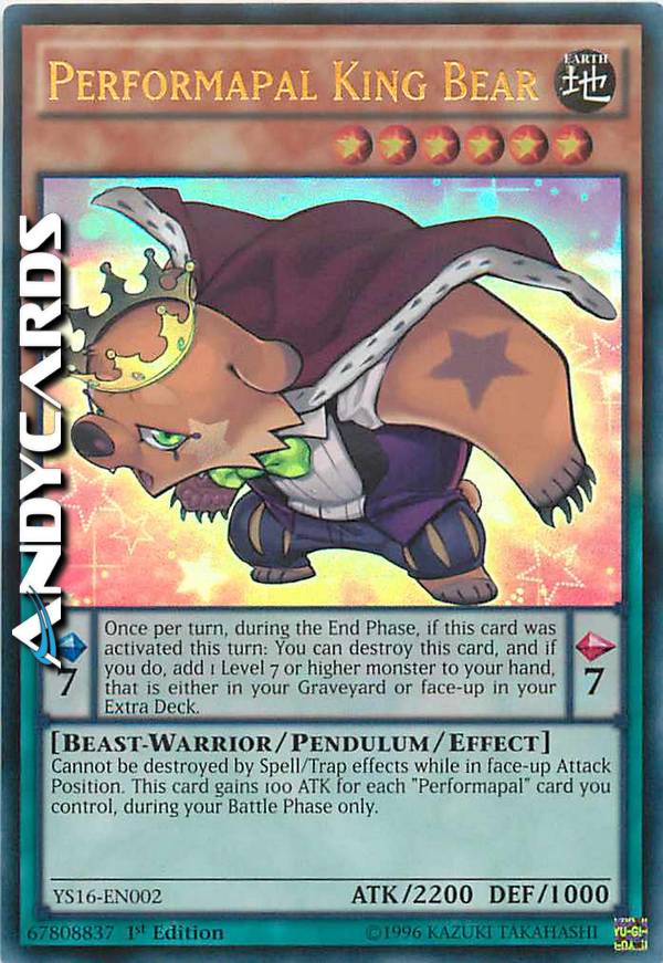 Cannot be destroyed by Spell/Trap effects while in face-up Attack Position. This card gains 100 ATK for each "Performapal" card you control, during your Battle Phase only.