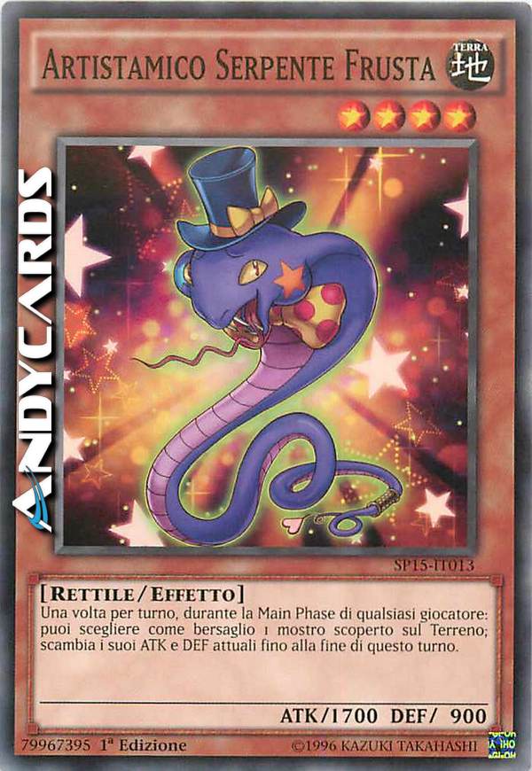 Una volta per turno, durante la Main Phase di qualsiasi giocatore: puoi scegliere come bersaglio 1 mostro scoperto sul Terreno; scambia i suoi ATK e DEF attuali fino alla fine di questo turno.