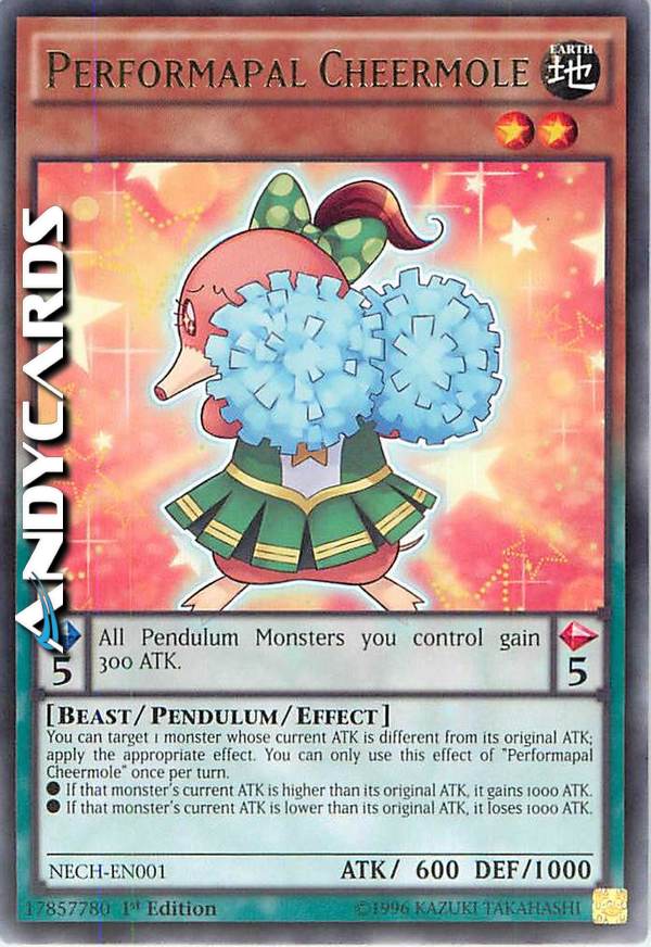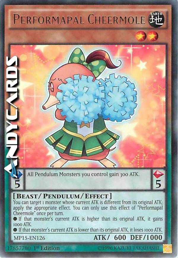 You can target 1 monster whose current ATK is different from its original ATK; apply the appropriate effect. You can only use this effect of "Performapal Cheermole" once per turn.