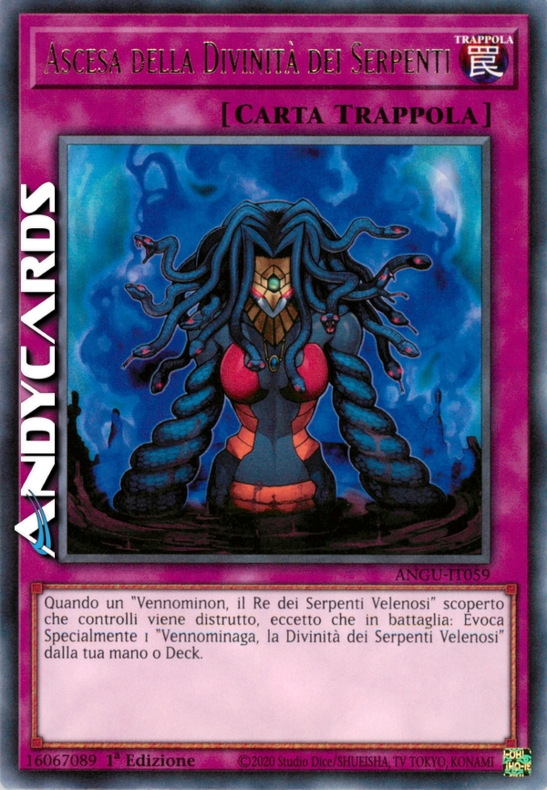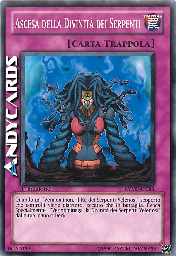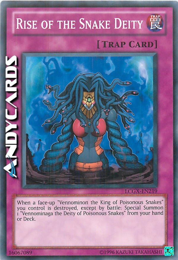 Quando un "Vennominon, il Re dei Serpenti Velenosi" scoperto che controlli viene distrutto, eccetto che in battaglia: Evoca Specialmente 1 "Vennominaga, la Divinità dei Serpenti Velenosi" dalla tua mano o Deck.
