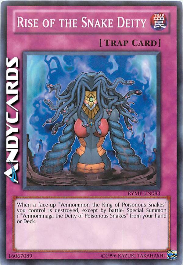 When a face-up "Vennominon the King of Poisonous Snakes" you control is destroyed, except by battle: Special Summon 1 "Vennominaga the Deity of Poisonous Snakes" from your hand or Deck.