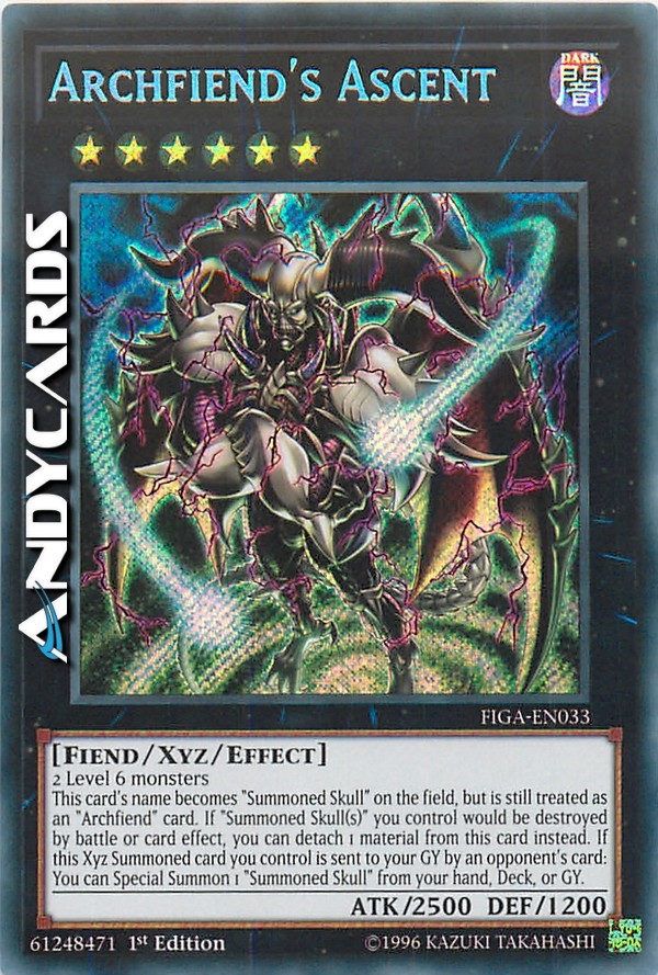 This card's name becomes "Summoned Skull" on the field, but is still treated as an "Archfiend" card. If "Summoned Skull(s)" you control would be destroyed by battle or card effect, you can detach 1 material from this card instead. If this Xyz Summoned card you control is sent to your GY by an opponent's card: You can Special Summon 1 "Summoned Skull" from your hand, Deck, or GY.