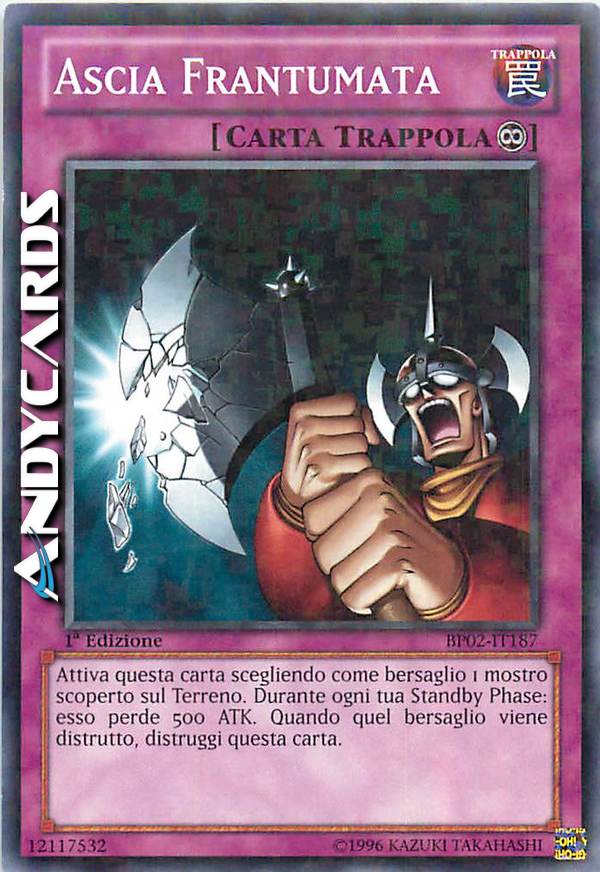 Scegli 1 mostro scoperto sul terreno. Fino a quando questa carta è scoperta sul Terreno, diminuisci l'ATK di quel mostro di 500 punti durante ogni tua Standby Phase. Quando quel mostro viene distrutto, distruggi questa carta.