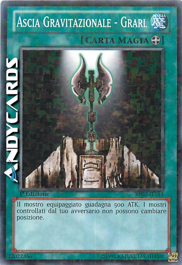 Un Mostro equipaggiato con questa carta aumenta il suo ATK di 500 punti. Fino a quando questa carta resta scoperta sul Terreno, i mostri sul Terreno del tuo avversario non possono cambiare la loro posizione.