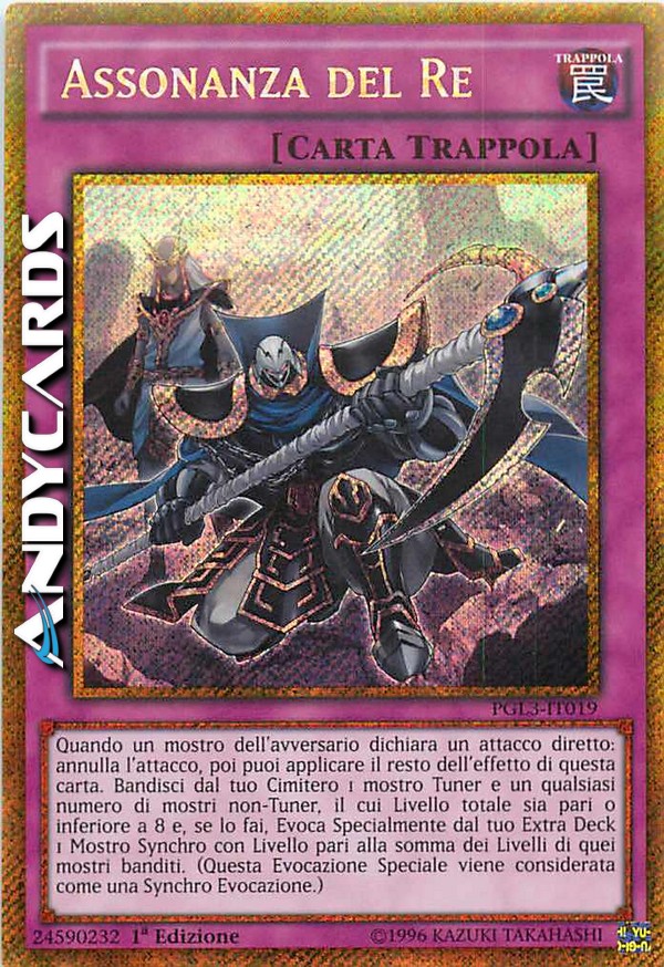 Quando un mostro dell'avversario dichiara un attacco diretto: annulla l'attacco, poi puoi applicare il resto dell'effetto di questa carta. Bandisci dal tuo Cimitero 1 mostro Tuner e un qualsiasi numero di mostri non-Tuner, il cui Livello totale sia pari o inferiore a 8 e, se lo fai, Evoca Specialmente dal tuo Extra Deck 1 Mostro Synchro con Livello pari alla somma dei Livelli di quei mostri banditi. (Questa Evocazione Speciale viene considerata come una Synchro Evocazione.)