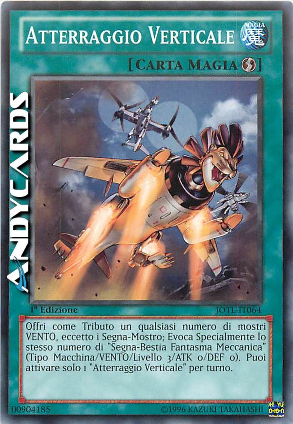 Offri come Tributo un qualsiasi numero di mostri VENTO, eccetto i Segna-Mostro; Evoca Specialmente lo stesso numero di "Segna-Bestia Fantasma Meccanica" (Tipo Macchina/VENTO/Livello 3/ATK 0/DEF 0). Puoi attivare solo 1 "Atterraggio Verticale" per turno.