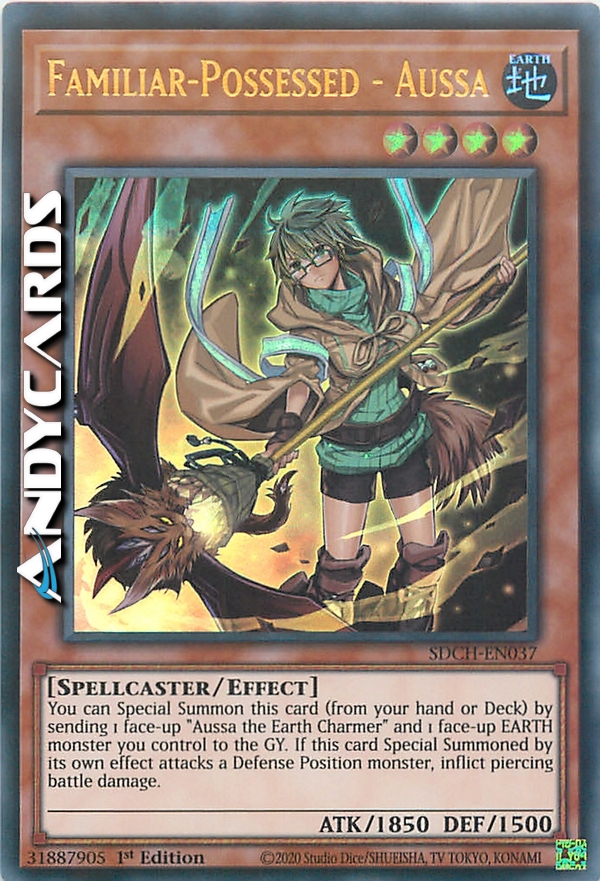 You can Special Summon this card (from your hand or Deck) by sending 1 face-up "Aussa the Earth Charmer" and 1 face-up EARTH monster you control to the GY. If this card Special Summoned by its effect attacks a Defense Position monster, inflict piercing battle damage to your opponent.