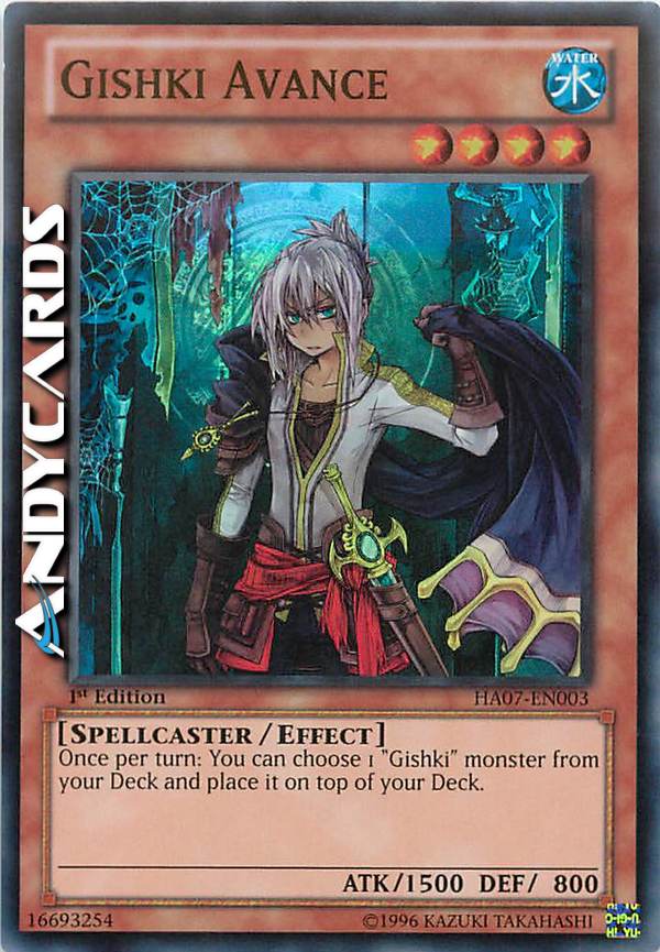 Una volta per turno: puoi selezionare 1 mostro "Gishki" dal tuo Deck e metterlo in cima al tuo Deck.