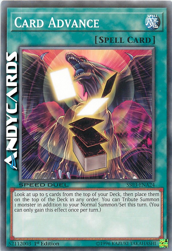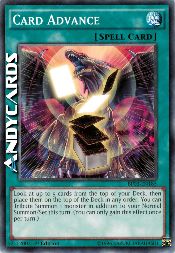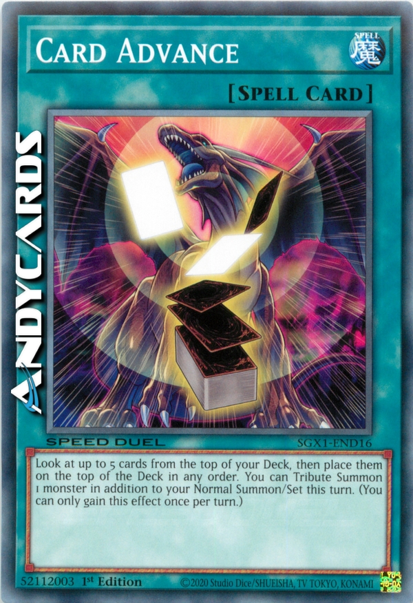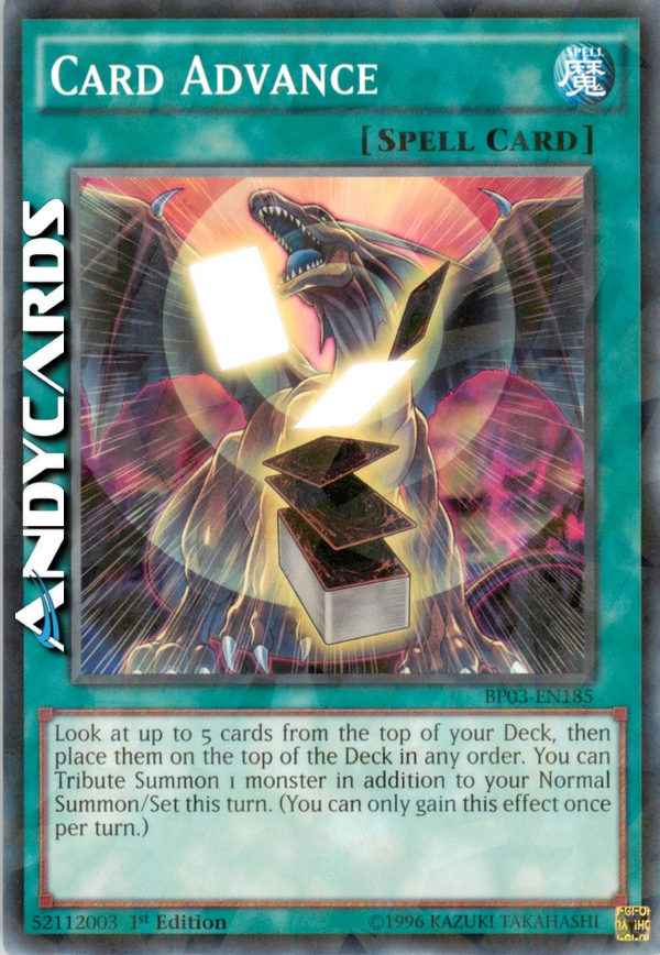 Guarda fino a 5 carte dalla cima del tuo Deck, poi mettile in cima al Deck in qualsiasi ordine. Puoi Evocare tramite Tributo 1 mostro in aggiunta alla tua Evocazione Normale/Posizionamento in questo turno. (Puoi guadagnare questo effetto una sola volta per turno.)