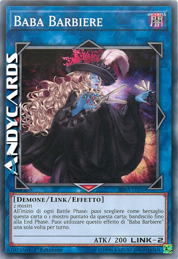All'inizio di ogni Battle Phase: puoi scegliere come bersaglio questa carta o 1 mostro puntato da questa carta; bandiscilo fino alla End Phase. Puoi utilizzare questo effetto di "Baba Barbiere" una sola volta per turno.