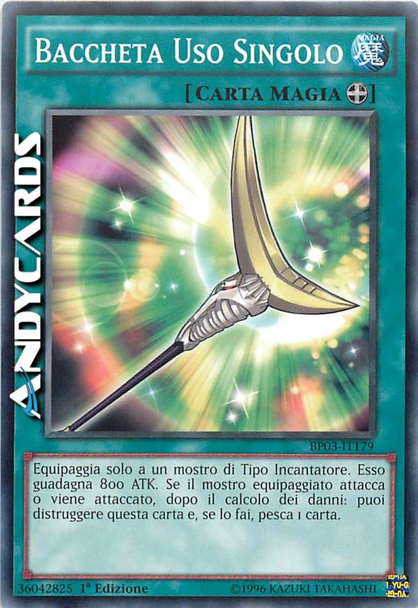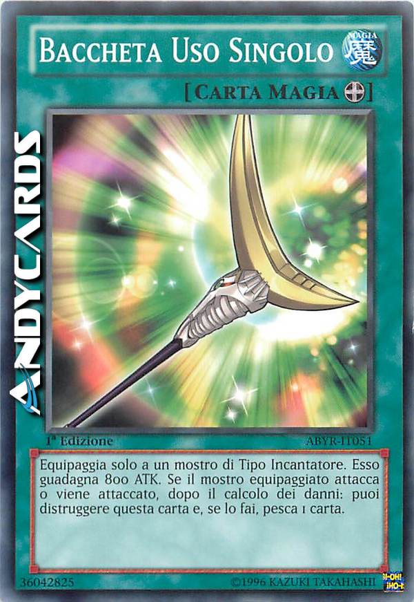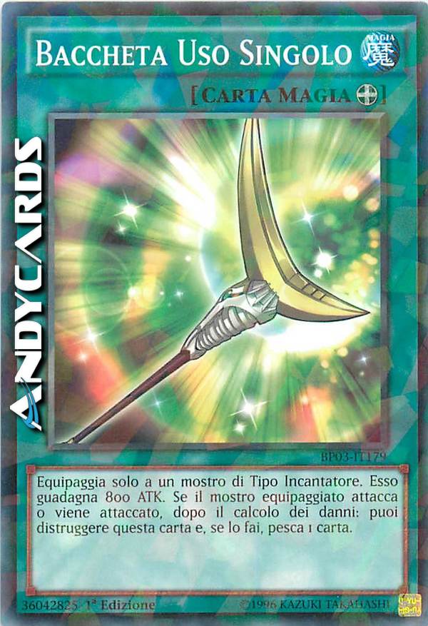 Equipaggia solo a un mostro di Tipo Incantatore. Esso guadagna 800 ATK. Se il mostro equipaggiato attacca o viene attaccato, dopo il calcolo dei danni: puoi distruggere questa carta e, se lo fai, pesca 1 carta.