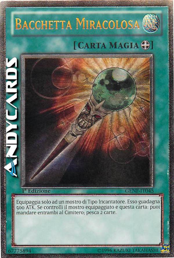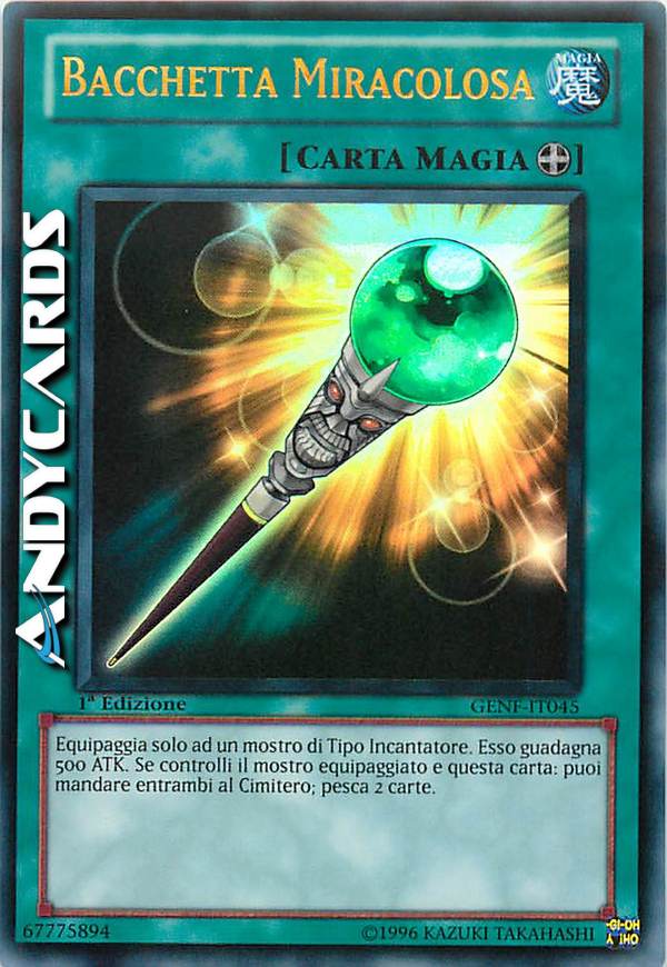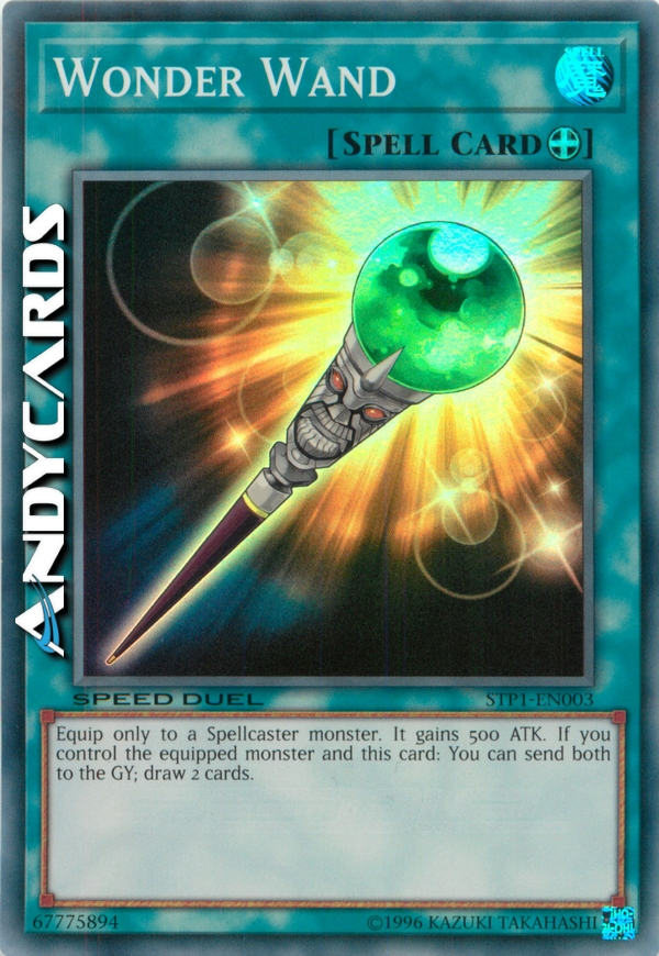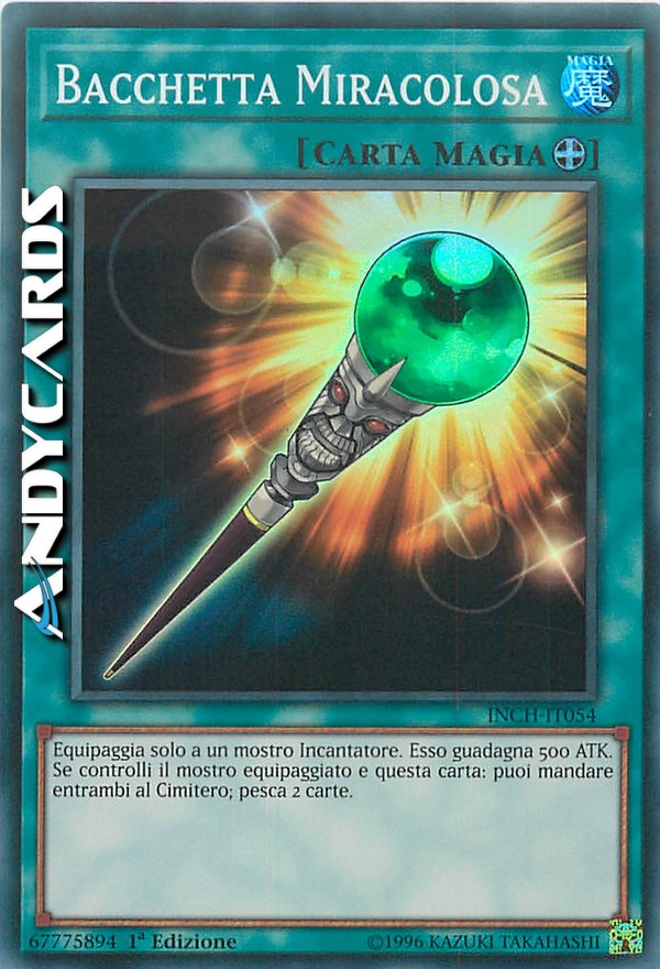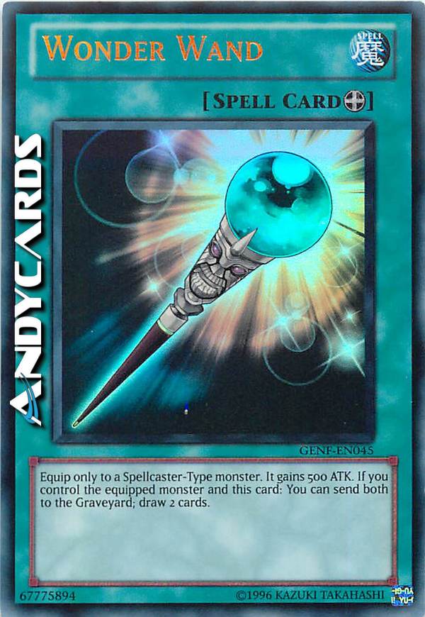 Equipaggia solo a un mostro di Tipo Incantatore. Esso guadagna 500 ATK. Se controlli il mostro equipaggiato e questa carta: puoi mandare entrambi al Cimitero; pesca 2 carte.