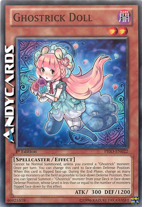 Cannot be Normal Summoned, unless you control a "Ghostrick" monster. Once per turn: You can change this card to face-down Defense Position. When this card is flipped face-up: During the End Phase, change as many face-up monsters on the field as possible to face-down Defense Position, then you can Special Summon 1 "Ghostrick" monster from your Deck in face-down Defense Position, whose Level is less than or equal to the number of monsters flipped face-down by this effect.